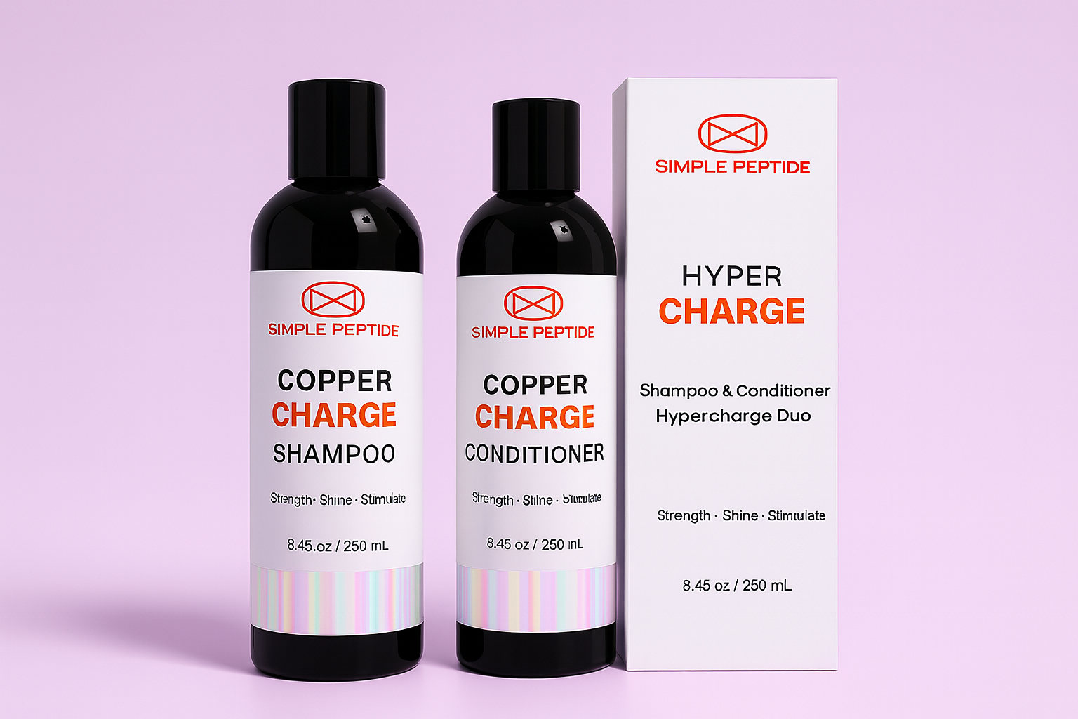 The Coppercharge Duo Hypercharge Shampoo and Conditioner is designed for laboratory research on peptide focused topical systems. It gives researchers a steady, sulfate free base that makes it easier to study how peptide rich formulas interact with keratin samples and scalp model environments. In addition, the duo supports controlled studies that explore peptide delivery, surface behavior, hydration patterns, cleansing action, and overall structural strength.