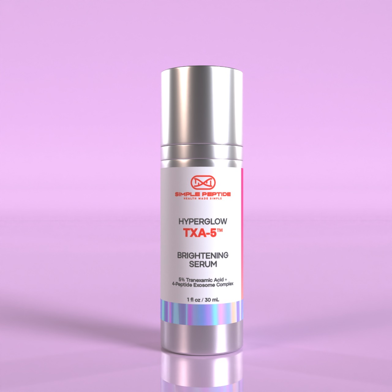 HyperGlow TXA 5 Exosome Serum is designed for laboratory studies on peptide enriched topical systems. Its stable formula supports research on delivery behavior, pigmentation modeling, hydration patterns, and exosome driven transport across keratin based samples.