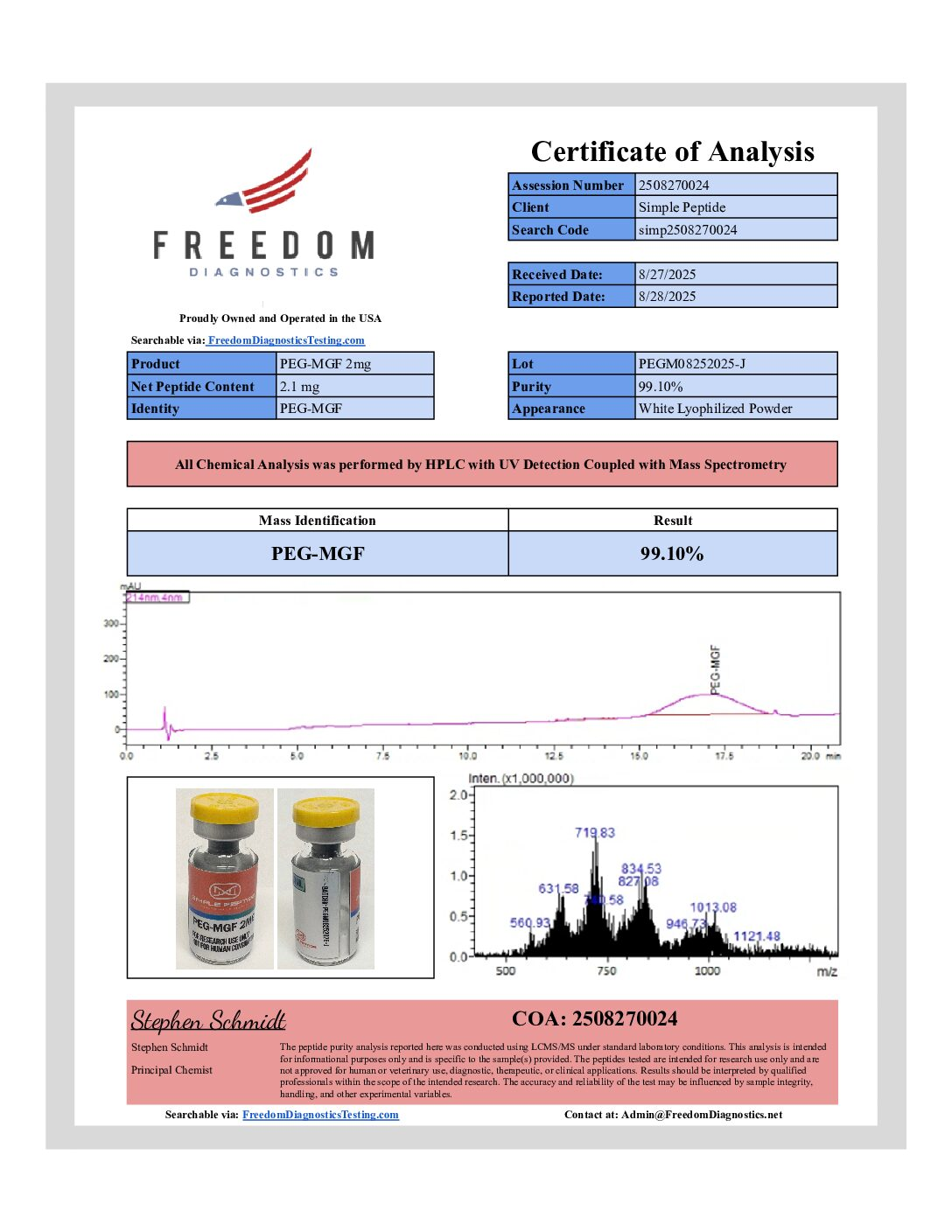 Ongoing scientific research continues to include PEG-MGF in peptide focused laboratory studies. Its defined sequence, modified structure, and suitability for controlled research models make it a useful tool for advanced experimental work.