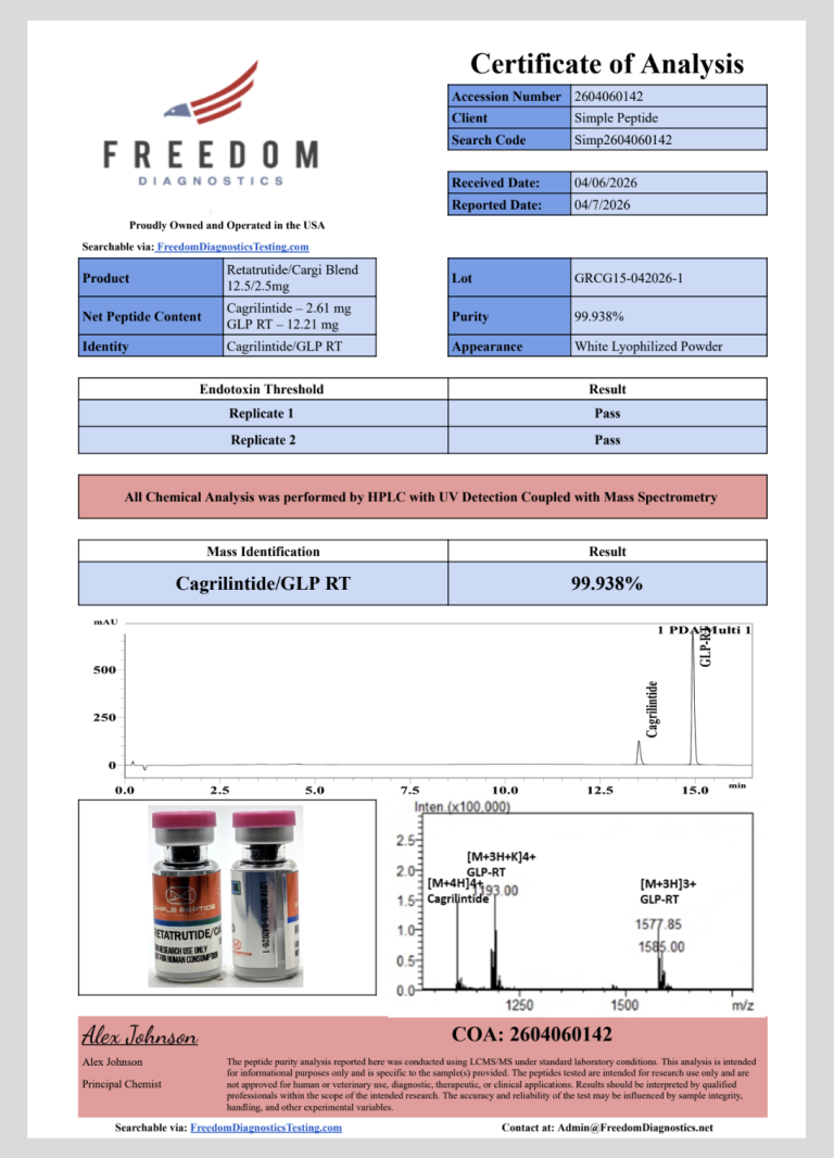 Researchers value SP-3RT/Cag for its compatibility with structured research workflows and combination study designs. Its consistent composition helps reduce variation during testing and supports comparison across studies that involve single peptides and blended formulations. In addition, its predictable handling characteristics make it suitable for long term laboratory projects that require reliable research materials.